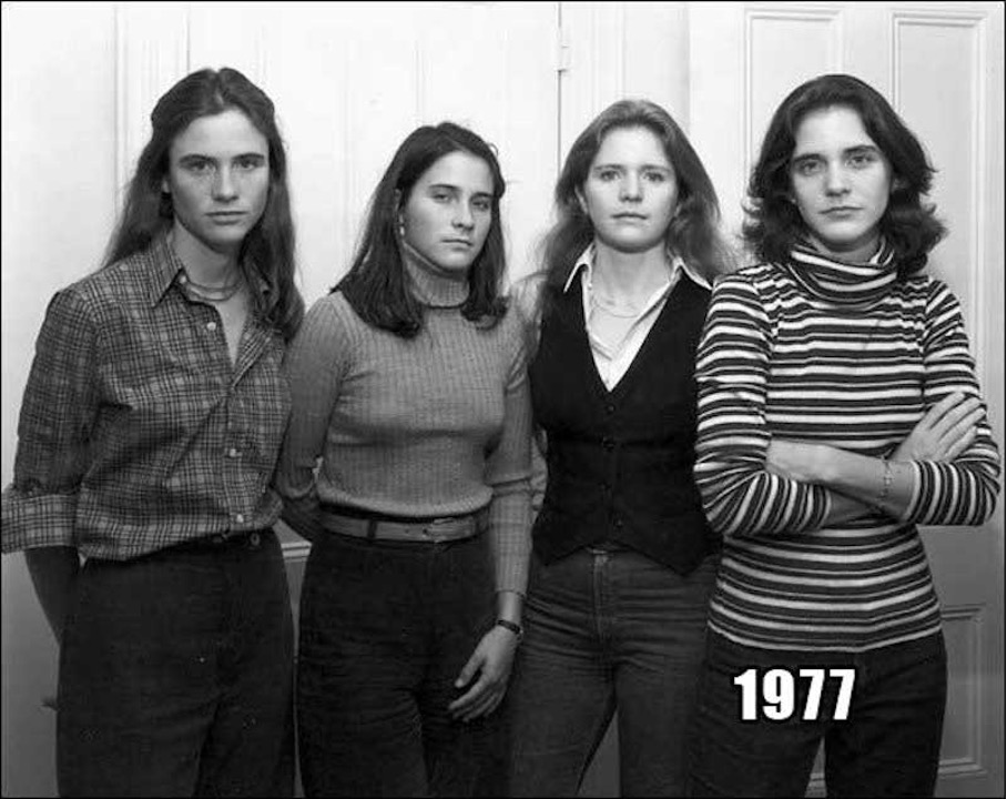 Een artistiek element die in deze foto steeds terug komt is de tijd. We zien in de foto’s van de jongere jaren dat de zussen vrijwel hetzelfde blijven, echter op latere leeftijd merk je wat verandering. Dat is natuurlijk logisch. Wat je ook ziet veranderen is hun manier van kleden. Je ziet dat de kleding stijl ook verandert met de tijd.