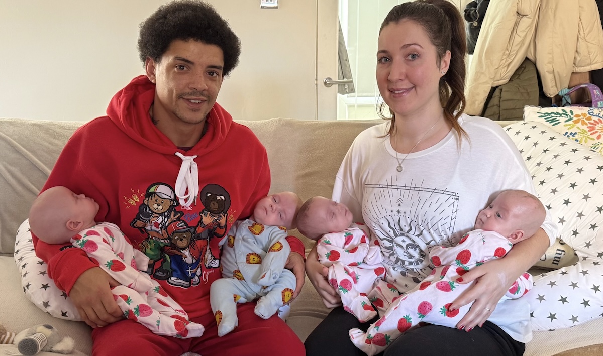 De vier baby’s werden geboren op 22 mei 2025. Dat gebeurde in het John Radcliffe Hospital in Engeland. Jodie was toen nog geen 26 weken zwanger. Dat is extreem vroeg.