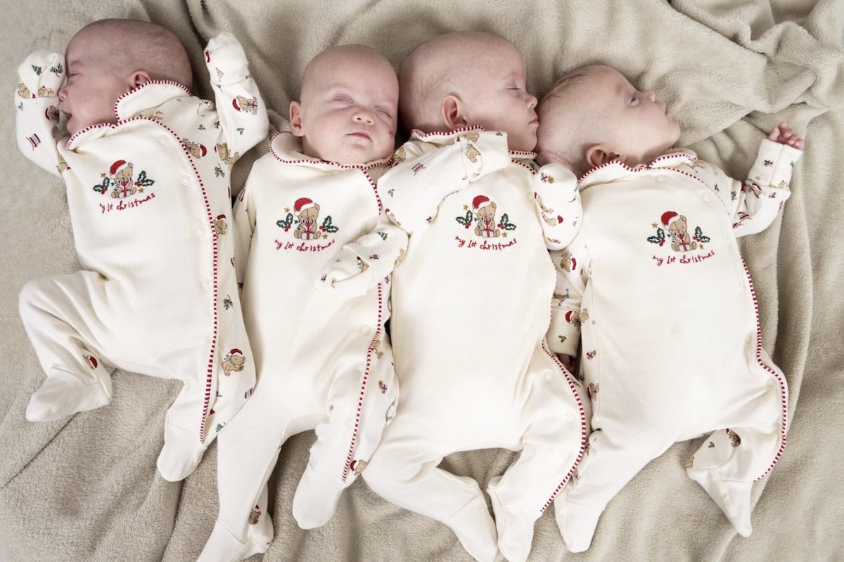 Samen wogen de vier baby’s bij de geboorte iets meer dan 2,5 kilo. Elk kindje was dus erg klein. Direct na de geboorte werden ze opgenomen op de intensive care voor pasgeborenen.