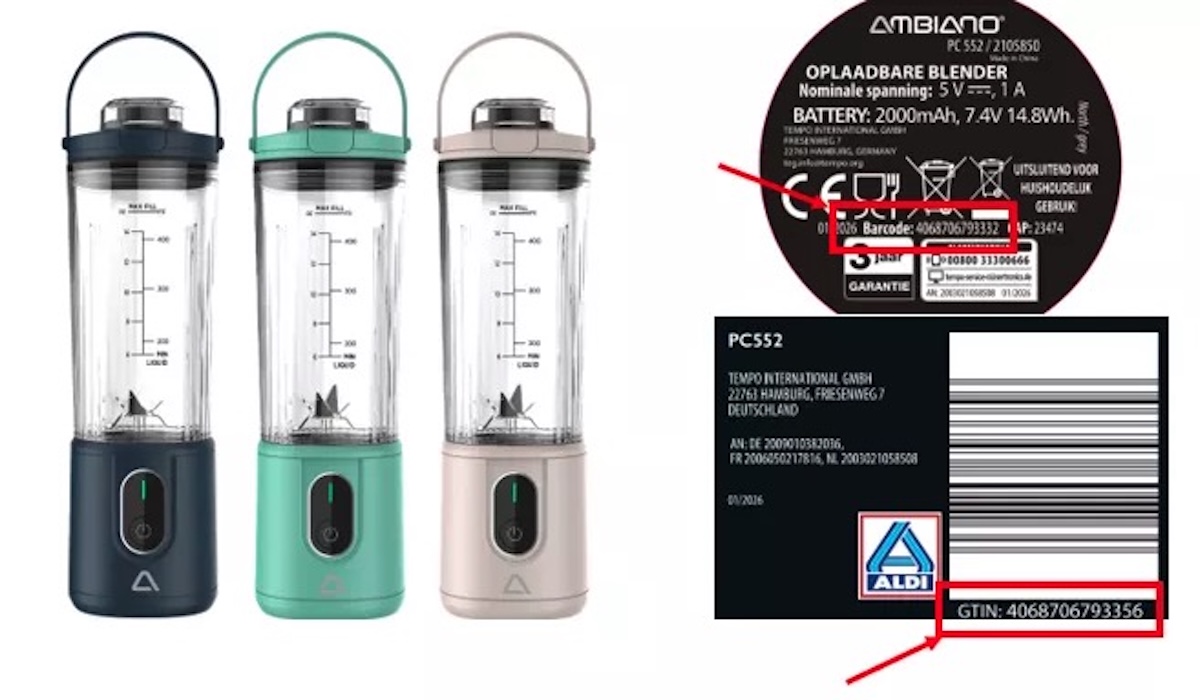 Het betreft een draagbare blender van het merk Ambiano. Het specifieke model heet PC552. Dit product lag sinds 3 januari 2026 in de winkels van ALDI in Nederland. Mogelijk heb jij dit apparaat in huis.