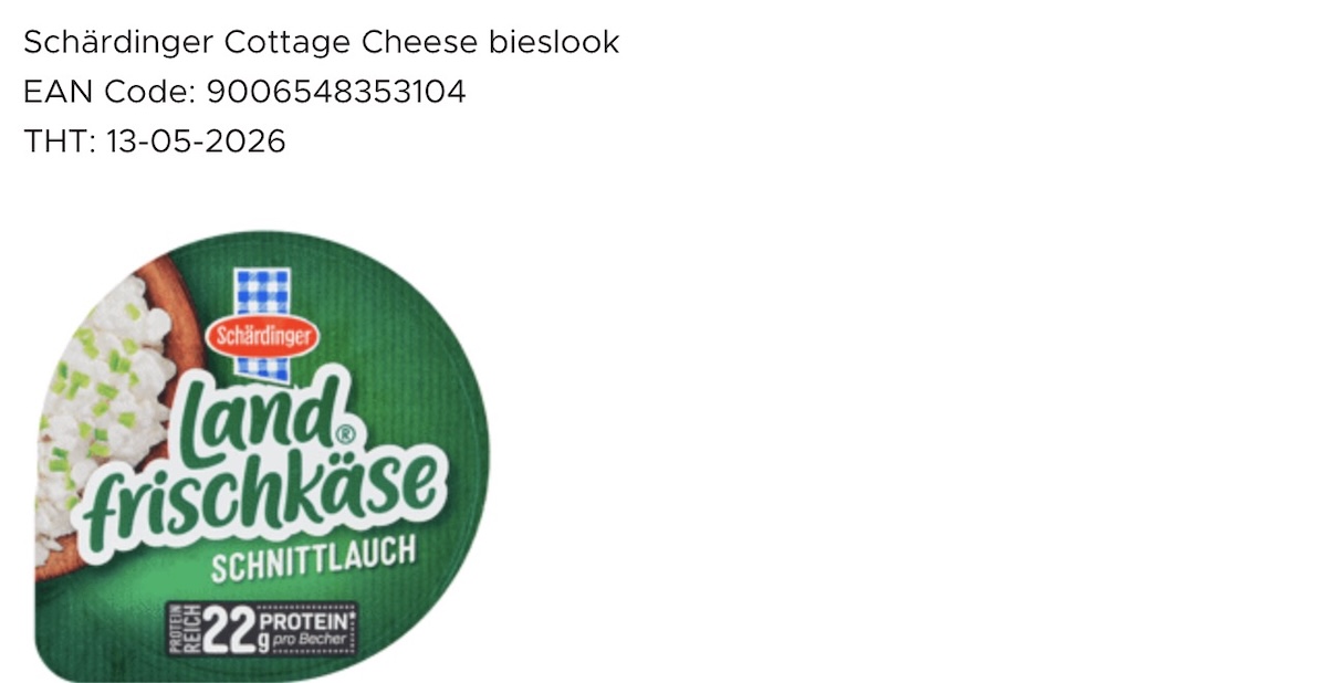 Er is een belangrijke waarschuwing afgegeven voor een specifiek zuivelproduct dat in omloop is. Het gaat om Schärdinger Cottage Cheese met bieslook in een verpakking van 200 gram. Producent Koningszuivel heeft laten weten dat er mogelijk iets mis is gegaan met de etikettering van dit product. Daardoor kan belangrijke informatie ontbreken op de verpakking. Dit kan vooral risico’s opleveren voor mensen met een allergie.