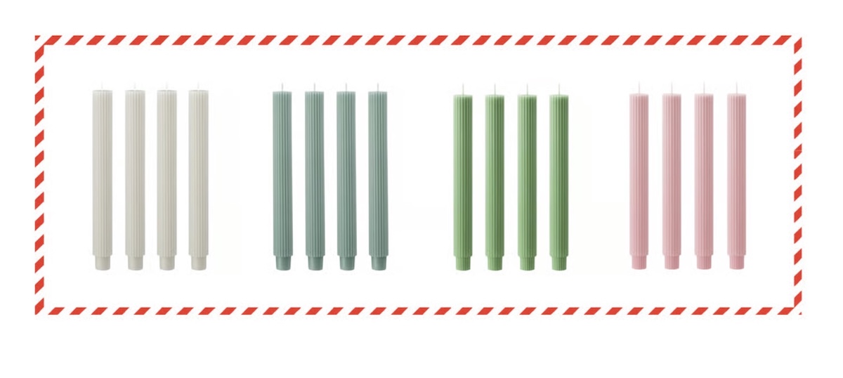Het gaat om meerdere varianten van dezelfde kaars. Deze SMÖJTRÄD kaarsen zijn geurloos en hebben verschillende kleuren. Alle genoemde varianten vallen onder dezelfde terugroepactie. Het is daarom belangrijk om goed te controleren welke kaarsen je in huis hebt.