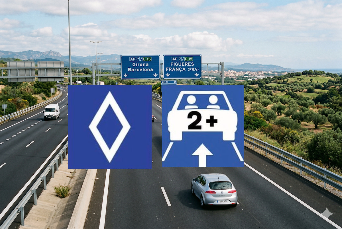 Het blauwe bord met de witte ruit geeft een speciale rijstrook aan. Deze rijstrook is niet voor iedereen bedoeld. In Frankrijk wordt deze strook bijvoorbeeld gebruikt voor carpoolers. Dat betekent dat je met minimaal twee personen in de auto moet zitten.