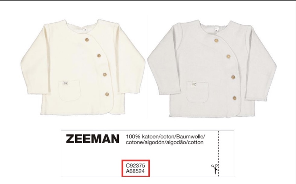 Naast het boxpak is er nog een tweede product dat wordt teruggeroepen. Het gaat om een baby vestje met artikelnummer 68524. Dit artikel is ook verkocht in een langere periode.
